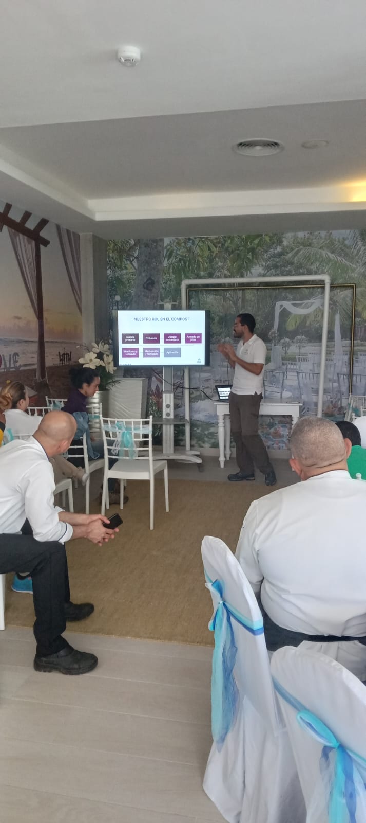 Hotel staff and members of the foundation recently participated in the first composting training session, where they learned the basic principles of this technique. Composting involves the controlled decomposition of organic matter—such as food scraps, leaves, and branches—into a nutrient-rich material known as compost.